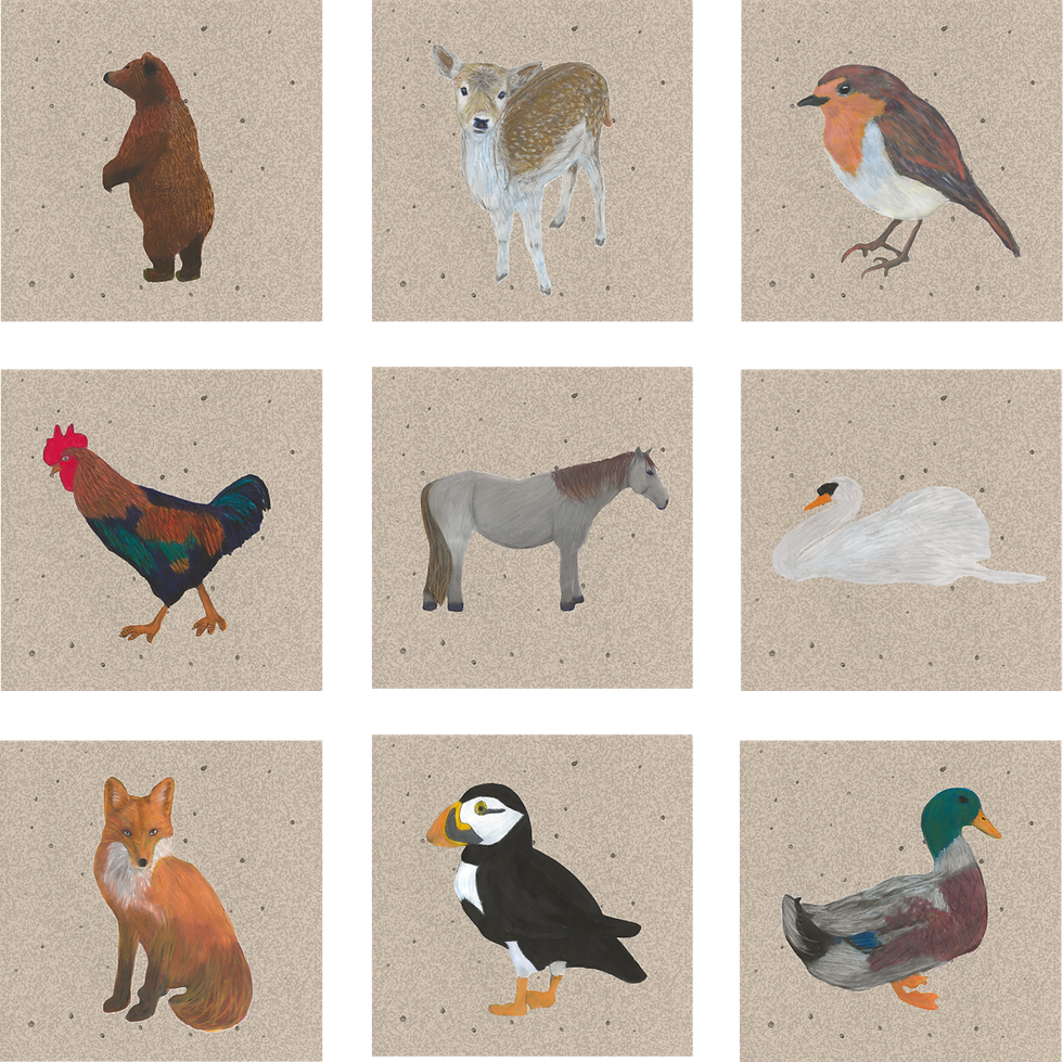 Multipack x 9 Greeting Card Notecard Set - Any Occasion - Wildlife Design